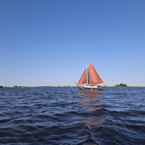 Unsere kleinste Lemsteraak MANNA mit 9.50 Meter Länge, überschaubar und auch für Anfänger mit Plattbodenseglern gut geeignet.